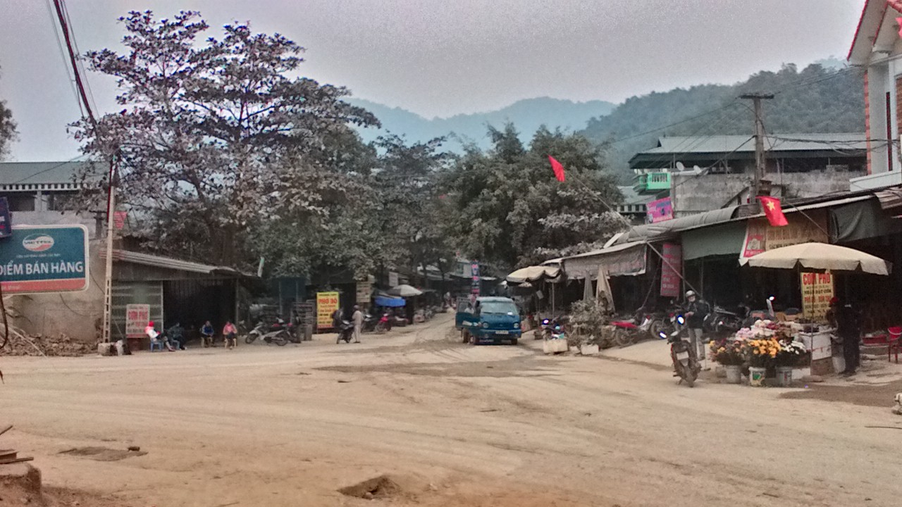 Suuntasimme Hanoista länteen menevää tietä, kohti Mai Ch’au:ta, 140 km, ei nähty oikeastaan yhtään asumatonta aluetta, pieniä kaupunkeja toinen toisessaan kiinni. Liikenne harveni pikku hiljaa, mutta mopoja ja rekkoja silti riittää. Kaikkialla, ollaan kaupungissa tai maaseudulla, torvet soivat, takana tuleva ilmoittaa, että täältä tullaan!