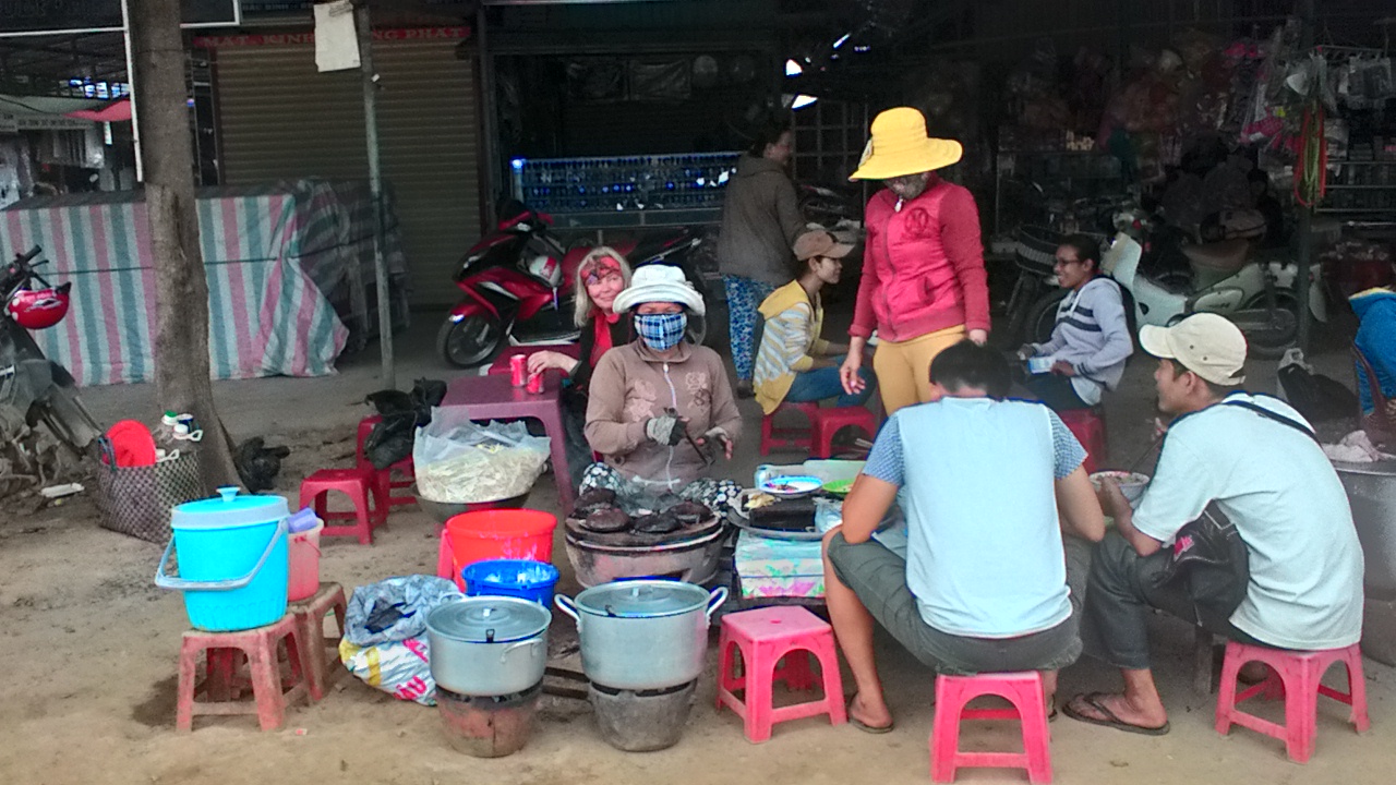 Illaksi tultiin Pho Chauhun, tyypilliseen vietnamilaiseen pieneen kaupunkiin, hotellin löytäminen oli vähän vaikeaa, kun talossa ei lukenut mitään meille tuttua tekstiä, vaatimaton, mutta ihan ”siisti”, ei tetenkään lämmitystä, yöksi lämpötila laskee 12 asteeseen. Mopot tuotiin respaan, tosin siinä ei ollut minkäänlaisia seiniä, eli ihan kuin kadulla olivat olleet.