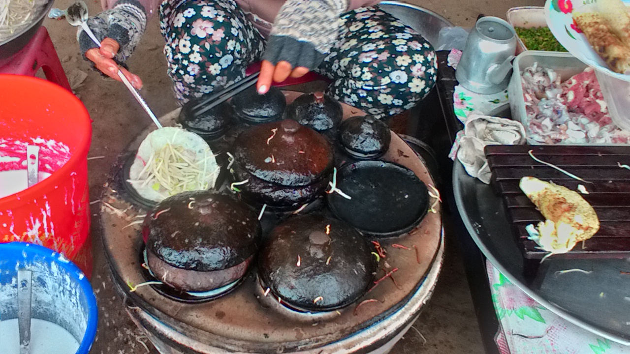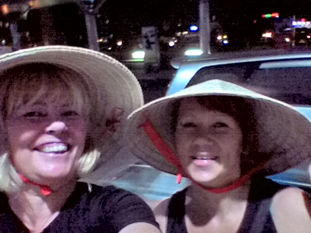 Menimme hotelliimme, tappelimme toimimattoman netin kanssa ja lähdimme kaupungille. Aivan upeaa, valaistu kaupunki, ihan mielettömästi väkeä, kojut ja kaupat auki. Kävimme syömässä kadulla, tilauksen jälkeen pöytään tuotiin kuppi, missä oli kirkasta nestettä ja muutama porkkananpala, sitä sitten ihmettelemme, muistin, että olin joskus kuullut suomalaisesta, joka oli juonut käsienpesuveden … Sipen ehdotti, että kysy, ja minähän kysyin… saimme koko henkilökunnan nauramaan vedet silmissä, astiassa oli kevätrullien dippauskastiketta. Sitä sitten naurettiin moneen kertaan.