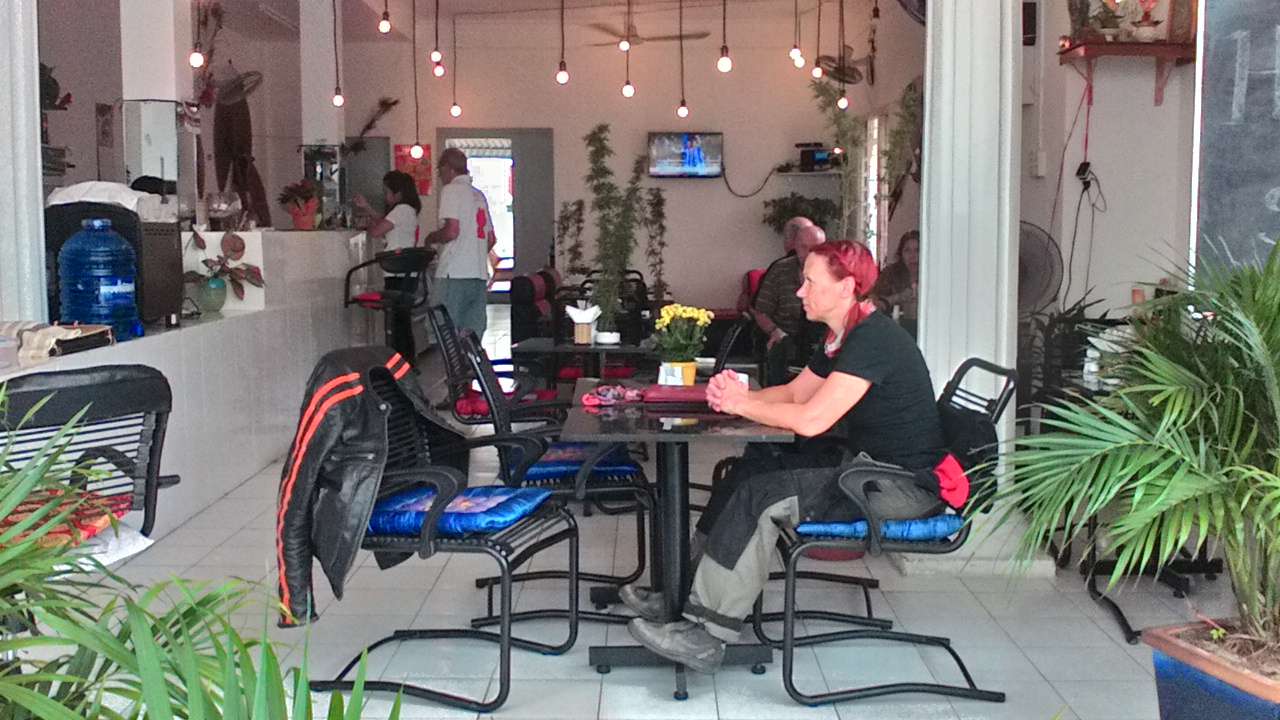 Vähän matkan päässä olikin ihan siisti kahvila, osoittautui australialaisen miehen pitämäksi. Tuli juttelemaan ja kertoi ummet lammet, vähän epäselvää puhetta 😦 on asunut täällä jo 5 vuotta, perus kuvio, jäänyt eläkkeelle, vietnamilainen vaimo… onkohan verovelkoja paossa, anteeksi… suomalaisista taikuissa asujista suurin osa on sellaisia…