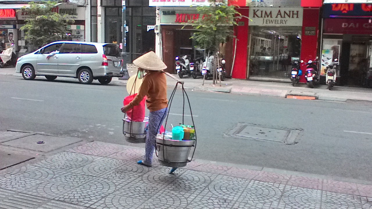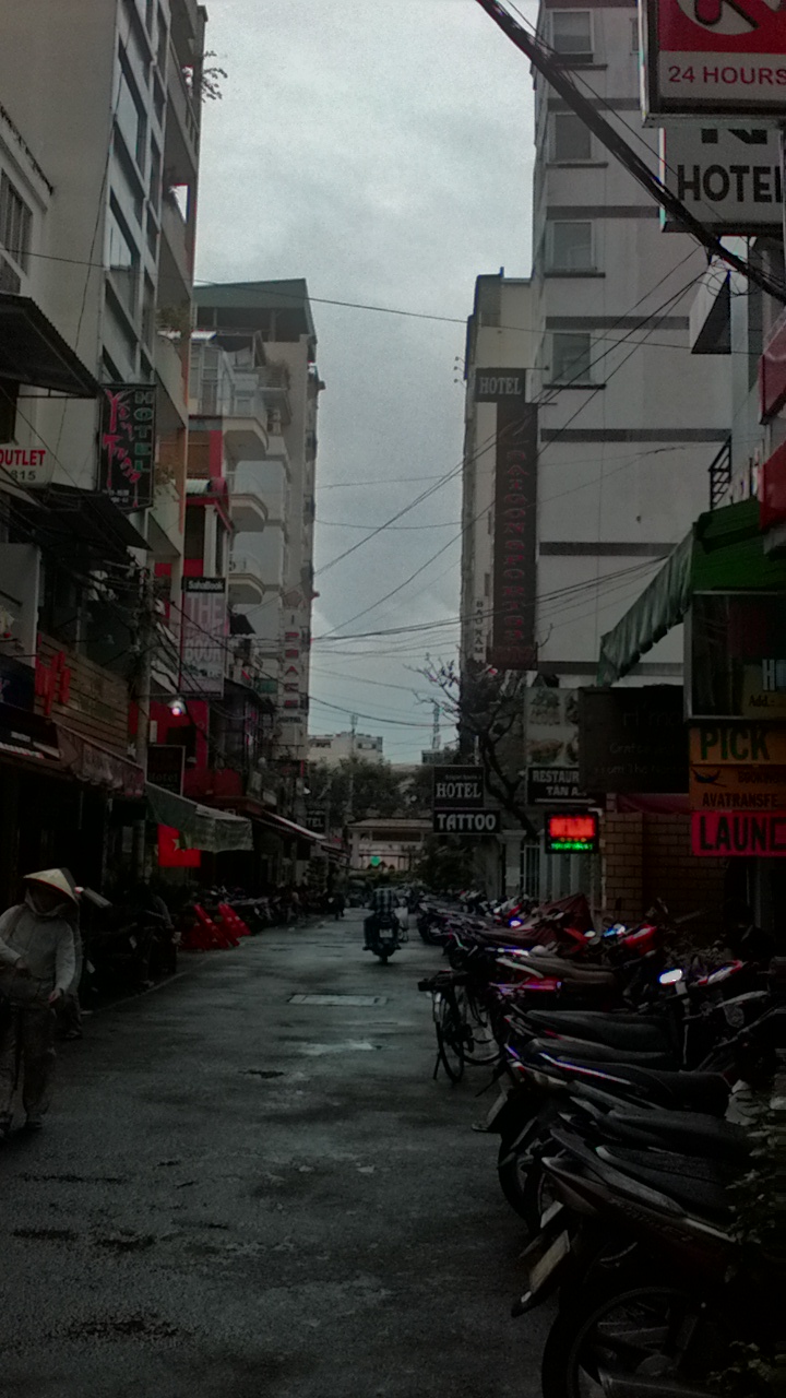Kuuma ja hikinen HCM herää yllättävän myöhään, vai onko se vain meidän katu? Taitaa olla… mutta hyvä niin, ei se tarkoita, että nukuisimme myöhään, vaan meidän annetaan itse päättä (lähes) miten myöhään nukutaan…. n. 7.00. Tällaiset hotelli-kadut ovat hyviä 🙂