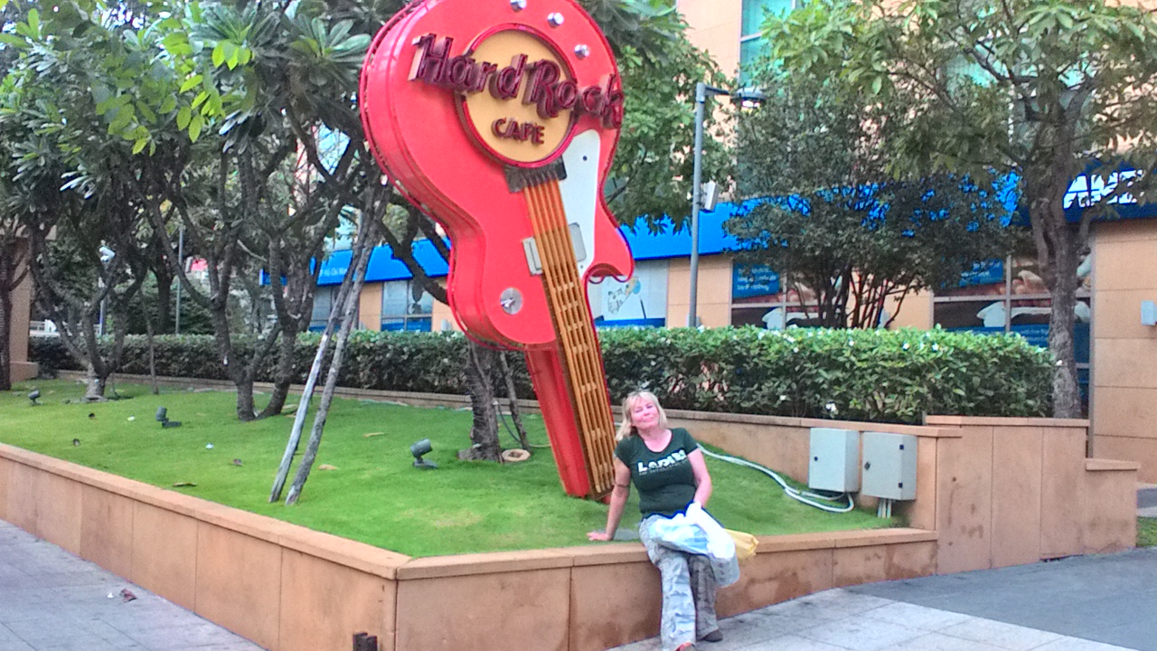 Toinen taksikeikka oli Hard Rock Cafeeseen, pettymys, vaatimattomin, missä ollaan käyty, ensimmäisen kerran muuten Vietnamissa törmättiin veroon, eli siihen ärsyttävään juttuun, että hinnat eivät ole ne mitä listalla on, vaan kaikkeen lisätään vero päälle, sama tyhmä käytäntö Jenkeissä. Miksi se ei voi olla hinnassa valmiina, ei tajuu…