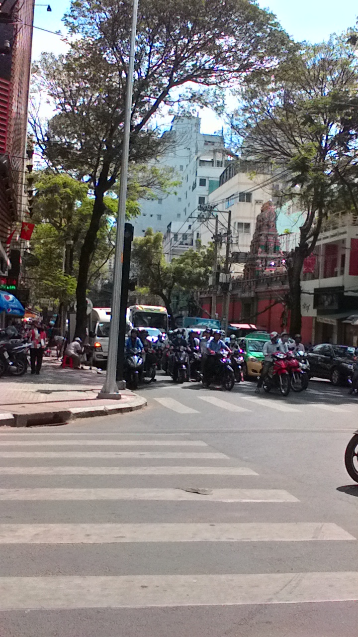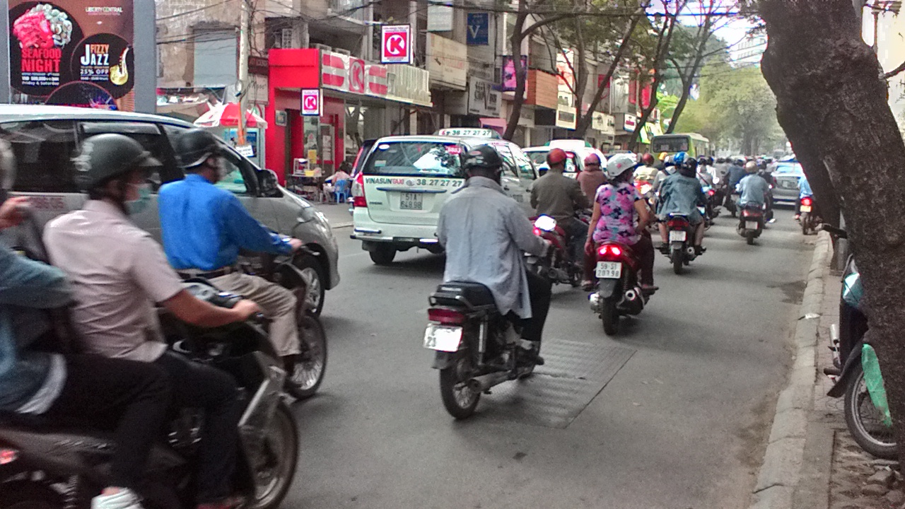 Helvetillinen härdeli kaikkialla, mopoja aivan käsittämätön määrä joka paikassa, mutta täällä on myös autoja, itseasiassa aivan erilainen maailma kuin se mistä lähdimme (Ha Noi) tai missä matkallamme kuljimme, lpi Vietnamin… Leveät kadut, kaistoja, kaistoja, kaistoja…